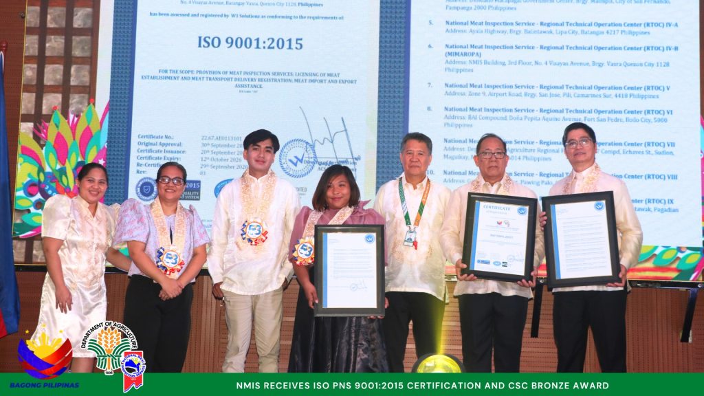 The National Meat Inspection Service (NMIS), through its Administrative Division, participated in the Public Service Excellence Forum (PSEF) 2026 held on January 13–14, 2026, at Widus Hotel, Clark, Pampanga. The two-day forum opened with a series of insightful and thought-provoking plenary sessions highlighting innovations and best practices in public service. During the event, NMIS was among the eighteen (18) government agencies conferred with the Bronze Award for attaining Maturity Level II across the four (4) core Human Resource (HR) systems: Recruitment, Selection, and Placement; Learning and Development; Performance Management; and Rewards and Recognition.